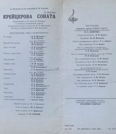 Narrator: Алла Тарасова; Николай Хмелев; Марк Прудкин; Виктор Станицын; Евдокия Алеева; Радиокомпозиция спектакля.
