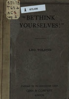 Bethink Yourselves! powerful anti-war essay written during the Russo-Japanese War. Tolstoy condemns the war as a tragic result of government power, nationalism, and blind obedience. |