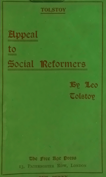 In Appeal to Social Reformers, Tolstoy addresses those seeking to improve society through political or economic change. He argues that reforms based on force, laws, or institutions cannot solve social problems, because they ignore the moral roots of injustice. |